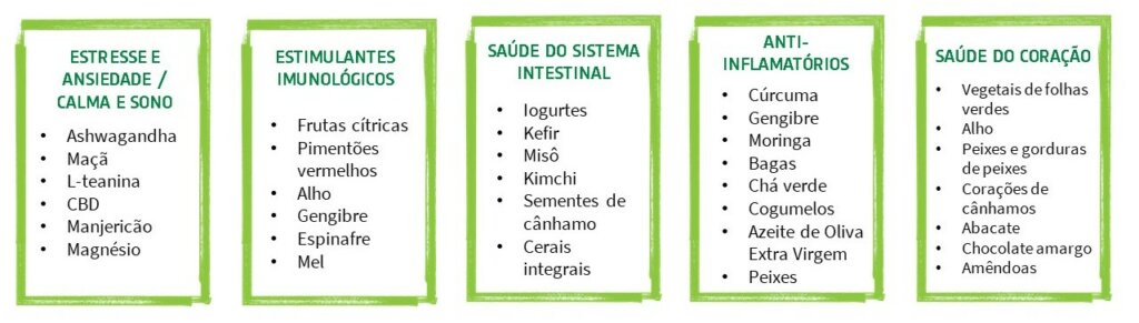 Vemos como essa tendência se forma em todo o mundo; por exemplo, nos Estados Unidos, os consumidores procuram alimentos que promovam um microbioma saudável, produtos como salgadinhos de sorgo e kimchi rico em probióticos estão chegando às prateleiras das lojas. Por outro lado, os consumidores do Reino Unido estão interessados em lanchonetes funcionais com benefícios para a saúde mental, com variedades que combinam nutrientes com nootrópicos e CBD para ajudar a melhorar a memória, criatividade e relaxamento.