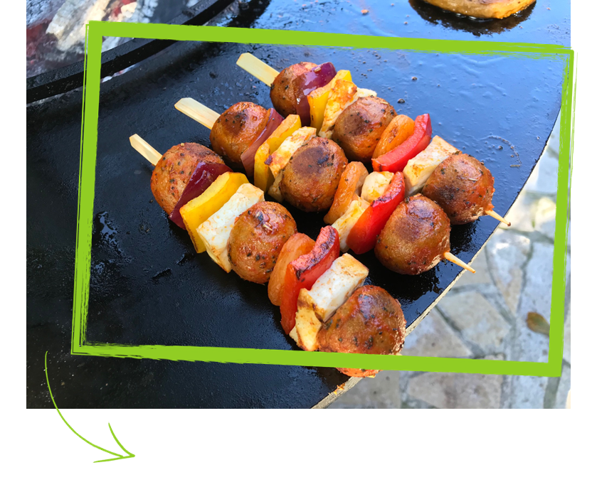 With the BBQ season fast approaching, why should meat eaters have all the fun? This delicious plant based skewer combines a vegan meatballs with a Lebanese oil marinade, halloumi, mixed bell peppers and dried apricots.
