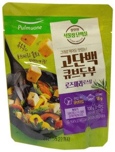 Pulmone Plant Protein Roasted High Protein Tofu Cubes with Rosemary (South Korea) are bite sized and roasted with black pepper and rosemary salt. They contain 18g protein.
