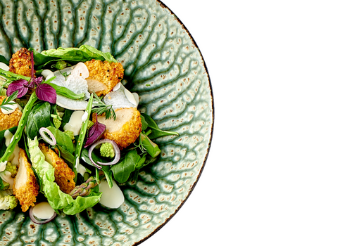 Plant-based fish goujons with Griffith Foods Nutritional coating fortified with proteins and fibres. Served with our lemon and herb mayonnaise.
