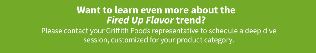 Get inspired to create fiery new offerings showcasing smoky flavors with these on-trend ideas featuring customized Griffith Foods products. Please contact your Griffith Foods sales representative to request samples of any of these products.